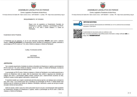 Warning: Trying to access array offset on value of type null in /home/portaldobatatinhacombr/domains/portaldobatatinha.com.br/public_html/index.php on line 51 Batatinha O Amigo do Povo | Solicita a pavimentação da PR-575, trecho de 11 km, entre o Distrito Jotaesse e o Distrito de Palmitópolis.